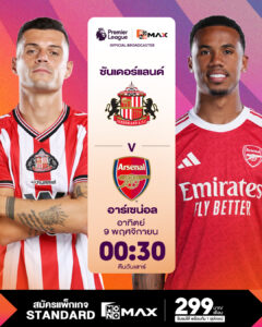 ข้ามเข้าสู่ วันอาทิตย์ที่ 9 พฤศจิกายน 2568 เวลา 00.30 น. (คืนวันเสาร์ที่ 8 พฤศจิกายน 2568) “ซันเดอร์แลนด์” เปิดบ้านรับ “อาร์เซน่อล” ปืนใหญ่ฟอร์มร้อนแรงยังคงรักษาอันดับจ่าฝูง ก่อนจะปิดท้ายด้วยเกมเช้ามืดใน เวลา 03.00 น. “เชลซี” พบ “วูล์ฟแฮมป์ตัน วันเดอเรอร์ส” ที่พร้อมวัดศักดิ์ศรีความเก๋าของสิงห์บลูในถิ่นสแตมฟอร์ด บริดจ์ ทั้งหมดถ่ายทอดสดทาง Monomax