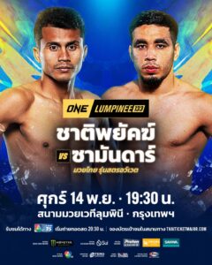 ในไฟต์ล่าสุด “ชาติพยัคฆ์” ถูกหยุดสถิติไร้พ่ายเอาไว้ที่ 7 ไฟต์ ในศึก ONE ลุมพินี กลับมารอบนี้จึงมุ่งมั่นอยากแก้ตัวเดินหน้าเก็บชัยสวยให้ได้อีกครั้ง โดยต้องเผชิญหน้ากับ “ซามันดาร์” นักสู้หน้าใหม่ป้ายแดงที่หวังเปิดตัวด้วยฟอร์มประทับใจเพื่อแจ้งเกิดในรายการนี้