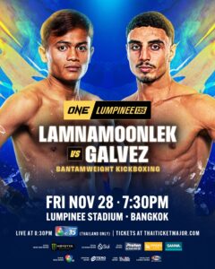 เผยโฉมคู่เอกภาคอินเตอร์ของศึก ONE ลุมพินี 135 ที่จะระเบิดความมันขึ้นในวันศุกร์ที่ 28 พ.ย.นี้ โดยประกบ “ลำน้ำมูลเล็ก ทีเด็ด99” นักสู้ดีกรี “ยอดมวย กกท.” วัย 27 ปี จากบุรีรัมย์ ให้มาพบกับ “ฮาเวียร์ กัลเวซ” จอมบู๊วัย 22 ปี จากสเปน ที่จะมาโชว์ฝีมือเป็นครั้งแรกบนเวทีแห่งนี้ ในกติกาคิกบ็อกซิ่ง รุ่นแบนตัมเวต (135-145 ป.)