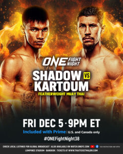 อัปเดตโปรแกรมล่าสุดของศึก ONE Fight Night 38 ที่จะระเบิดความมันขึ้นในวันเสาร์ที่ 6 ธ.ค.นี้ ณ สนามมวยเวทีลุมพินี (รามอินทรา) ซึ่งตรงกับช่วงเช้าเวลา 09:00 น. โดยมีการเปลี่ยนแปลงนักกีฬาในช่วงโค้งสุดท้ายก่อนการแข่งขัน 2 คู่ด้วยกัน
