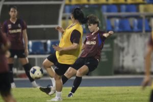 การฝึกซ้อมครั้งนี้ “โค้ชหนึ่ง” หนึ่งฤทัย สระทองเวียน หัวหน้าผู้ฝึกสอน นำทัพติวเข้ม โดยเน้นไปที่การใส่รายละเอียดแทคติกทั้งเกมรุกและเกมรับ รวมถึงการเล่นลูกตั้งเตะ ซึ่งใช้เวลา 1 ชั่วโมง 30 นาที