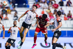 นาทีที่ 62 จังหวะเล่นลูกเตะมุมของทีมเยือน มนตรี ได้ขึ้นโขก บอลหลุดออกไปนิดเดียว