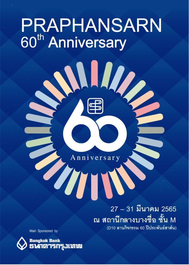 พบกับ งานครบรอบ 60 ปี ประพันธ์สาส์น ได้ที่ บูธ D05 และลานกิจกรรม 60 ปี (D10) ใน งาน สัปดาห์หนังสือแห่งชาติ ครั้งที่ 50 และ งานสัปดาห์หนังสือนานาชาติ ครั้งที่ 20 ระหว่าง วันที่ 27 มีนาคม – วันที่ 6 เมษายน ณ สถานีกลางบางซื่อ ติดตามความเคลื่อนไหวและกิจกรรมต่างๆของ สำนักพิมพ์ประพันธ์สาส์น ได้ทาง http://www.praphansarn.com