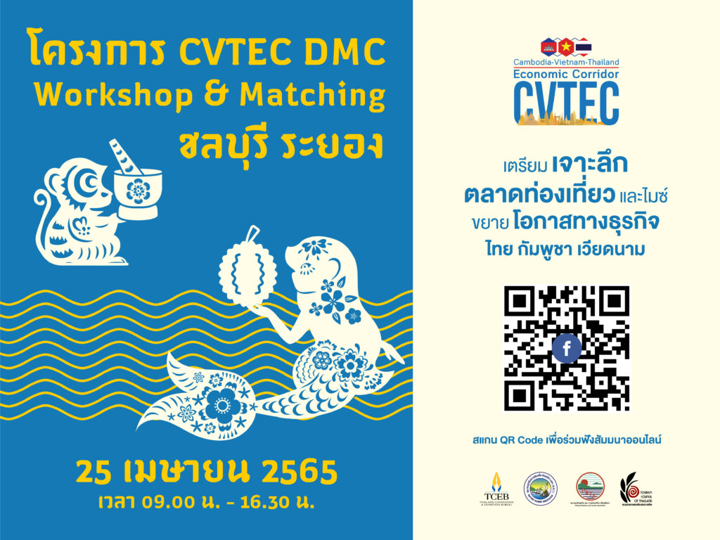 ทีเส็บ ร่วมกับ สภาอุตสาหกรรมการท่องเที่ยวแห่งประเทศไทย ชวนฟังสัมมนาออนไลน์ “CVTEC DMC Workshop & Matching ระยอง – ชลบุรี” เจาะลึกตลาดไมซ์ ขยายโอกาสทางธุรกิจบนเส้นทางระเบียงเศรษฐกิจชายฝั่งทะเลด้านใต้ไทย – กัมพูชา – เวียดนาม (CVTEC)