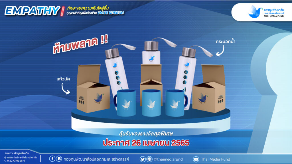 ทักษะของความเห็นใจผู้อื่น กุญแจสำคัญเพื่อก้าวข้าม Hate speech โดยหัวข้อ ที่จะพูดคุย คือ Empathy คืออะไร ? Digital Empathy มีความสำคัญอย่างไร ? และการมี Digital Empathy สามารถแก้ปัญหา Hate Speech ได้จริงหรือ ? งานนี้ได้ 3 วิทยากร ชั้นนำ อย่าง ต้น นรพันธ์ ทองเชื่อม นักจิตวิทยา และนักจิตบำบัดความคิดและพฤติกรรม, ปอนด์ ภริษา ยาคอปเซ่น Content Creator และพิธีกรพอดแคสต์ R U OK และดร.สังกมา สารวัตร อาจารย์ประจำสาขานิเทศศาสตร์ คณะเทคโนโลยีสารสนเทศและการสื่อสาร มหาวิทยาลัยศิลปากร มาถกความคิด ร่วมหาคำตอบได้ผ่านการเสวนาออนไลน์ และลุ้นรับของรางวัลสุดพิเศษจากกิจกรรมภายในงานทาง Facebook Fanpage กองทุนพัฒนาสื่อปลอดภัยและสร้างสรรค์ วันศุกร์ที่ 22 เมษายน เวลา 13.30 – 15.00 น. นี้ครับ สนใจเข้าร่วม คลิกลิงก์ เพื่อเข้าร่วมงานเสวนา https://shorturl.asia/Fdunz หรือสแกน Qr Code ในรูปได้เลยและสามารถติดตาม “กองทุนพัฒนาสื่อปลอดภัยและสร้างสรรค์” ได้ที่ Website : www.thaimediafund.or.th Facebook : กองทุนพัฒนาสื่อปลอดภัยและสร้างสรรค์ Youtube : www.youtube.com/c/ThaiMediaFund #เสวนาออนไลน์ #ถกTalkความคิดพิชิต3ภัยร้ายโลกไซเบอร์ #Empathyทักษะของความเห็นใจผู้อื่นกุญแจสำคัญเพื่อก้าวข้ามHatespeech #กองทุนพัฒนาสื่อปลอดภัยและสร้างสรรค์ #ThaiMediaFund #กองทุนสื่อ #สื่อสร้างสรรค์