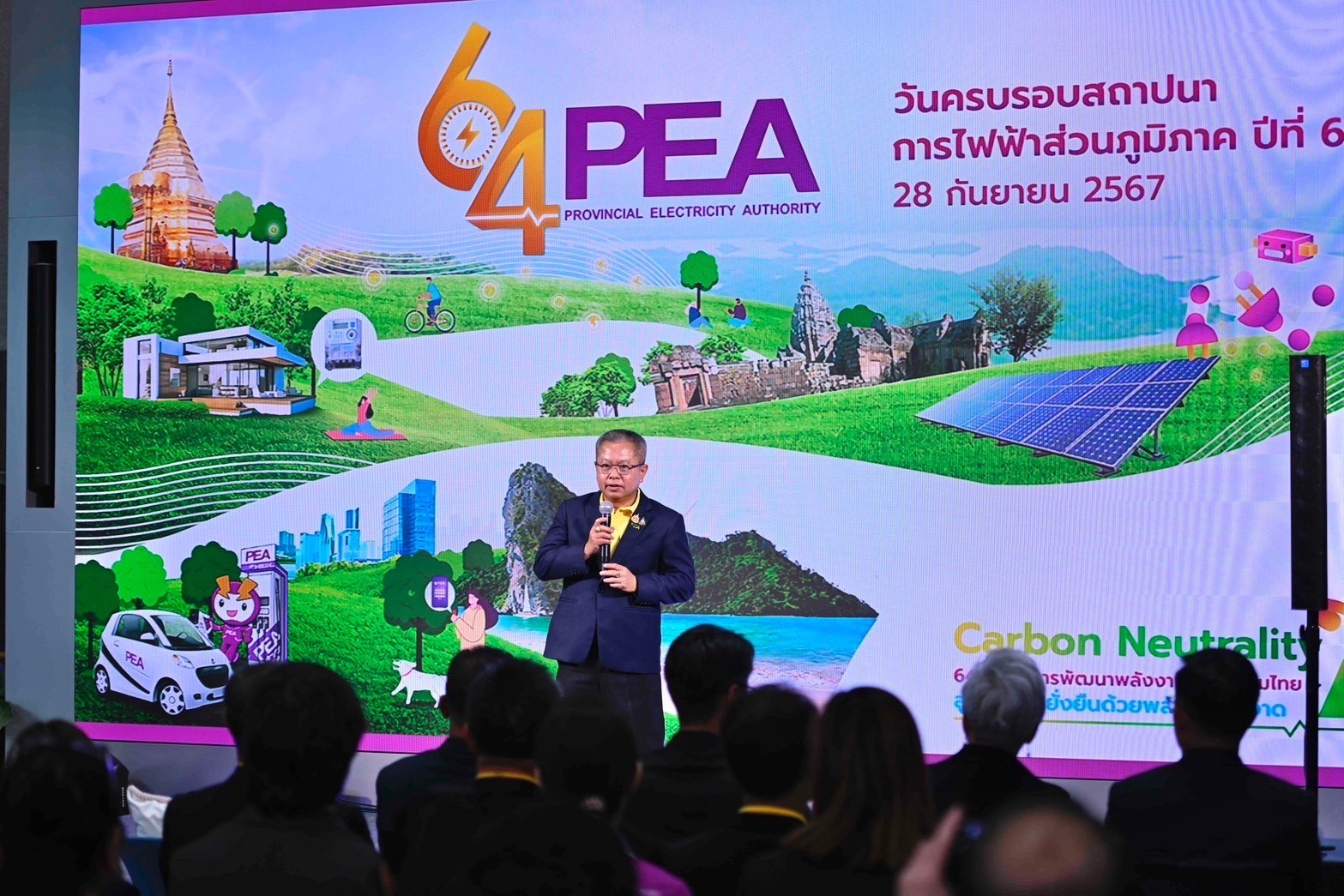 เส้นทาง 64 ปี ของการไฟฟ้าส่วนภูมิภาค (PEA) เริ่มต้นจากการบุกเบิกนำไฟฟ้าสู่ประชาชน เร่งรัดพัฒนาไฟฟ้าสู่ชนบท ส่งเสริมความเจริญสู่ภาคธุรกิจและอุตสาหกรรมจนสามารถขยายเขตระบบจำหน่ายไฟฟ้าให้บริการประชาชนอย่างทั่วถึงในพื้นที่รับผิดชอบ 74 จังหวัดทั่วประเทศ (ยกเว้น กรุงเทพมหานคร นนทบุรี สมุทรปราการ) นำเทคโนโลยีมาพัฒนาการดำเนินงานเพื่อยกระดับมาตรฐานระบบส่งจ่ายพลังงานไฟฟ้าและการบริการให้สามารถแข่งขันเชิงธุรกิจในระดับสากล มุ่งสู่องค์กรที่เป็นเลิศด้านธุรกิจพลังงานไฟฟ้า ร่วมสร้างคุณค่าสู่สังคมและสิ่งแวดล้อมด้วยเทคโนโลยีดิจิทัล ขับเคลื่อนองค์กรสู่ PEA Digital Utility และยังคงเดินหน้าบริหารจัดการพลังงานไฟฟ้าให้มีประสิทธิภาพด้วยระบบไฟฟ้าอัจฉริยะ เป็นมิตรต่อสิ่งแวดล้อมอยู่คู่กับชุมชนอย่างยั่งยืน ตามวิสัยทัศน์ "ไฟฟ้าอัจฉริยะ เพื่อคุณภาพชีวิตที่ดีอย่างยั่งยืน" (Smart Energy for Better Life and Sustainability) 64 ปี แห่งการพัฒนาพลังงานเพื่อสังคมไทย สู่อนาคตที่ยั่งยืนด้วยพลังงานสะอาด