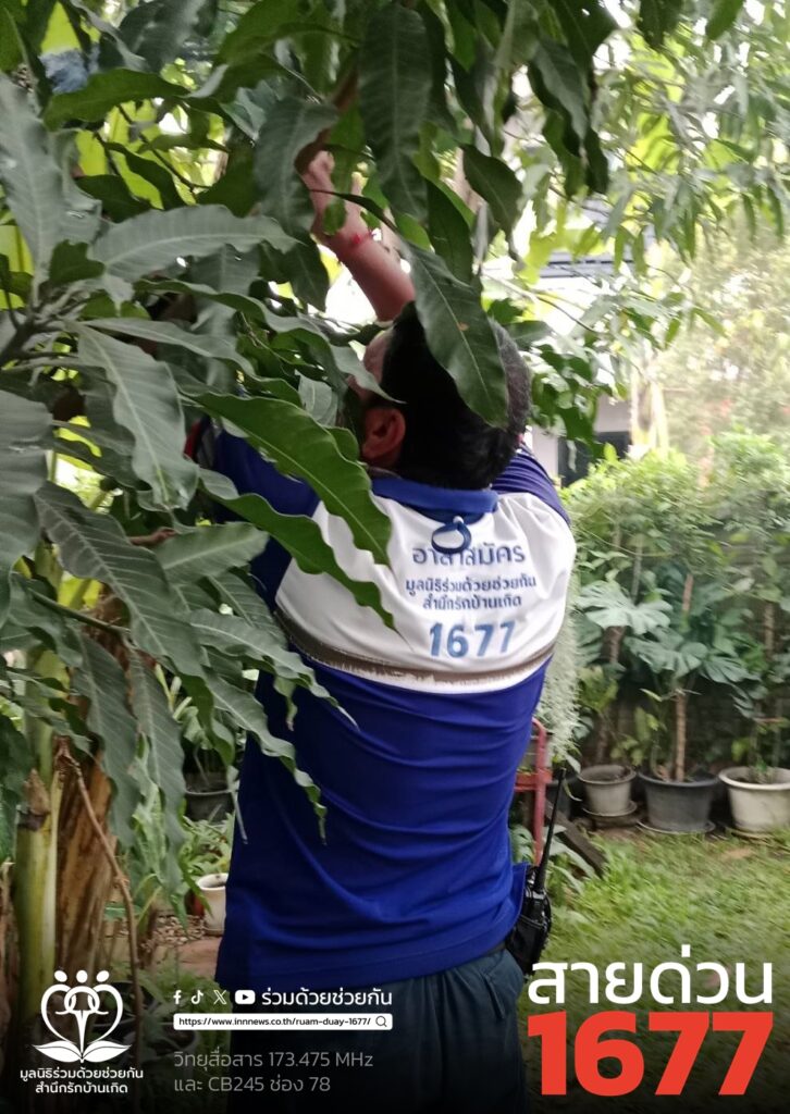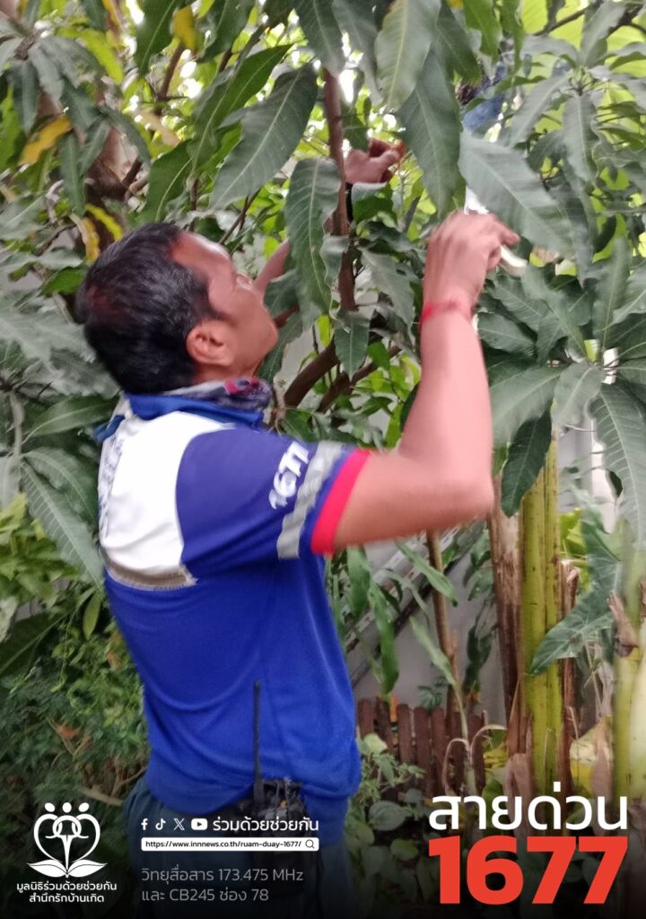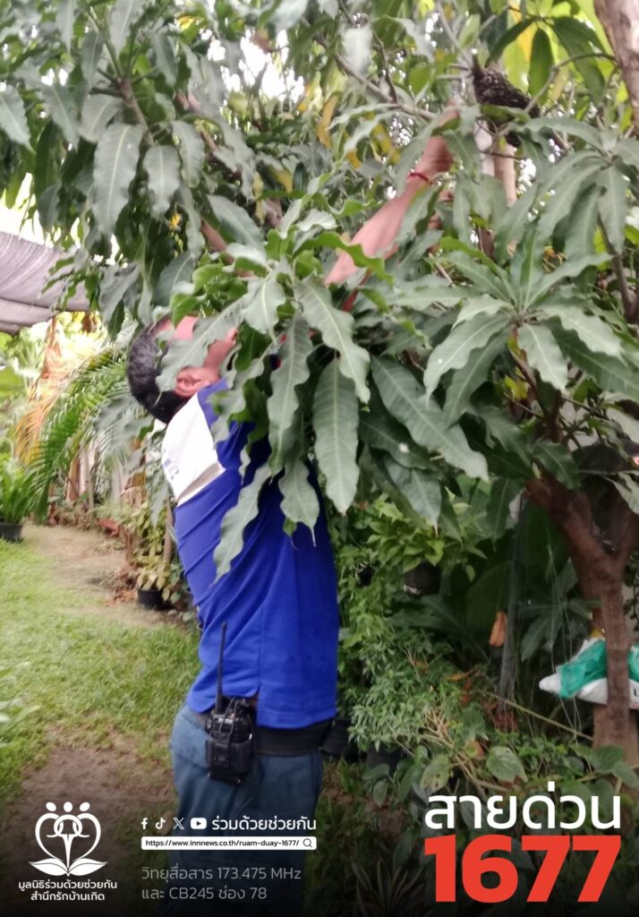 อาสาร่วมด้วยช่วยกัน รับแจ้งจากประชาชนขอความช่วยเหลือกำจัดสัตว์มีพิษอยู่บนต้นไม้หน้าบ้านพัก ถ.ไทยรามัญ แขวงสามวาตะวันตก เขตคลองสามวา กรุงเทพฯ