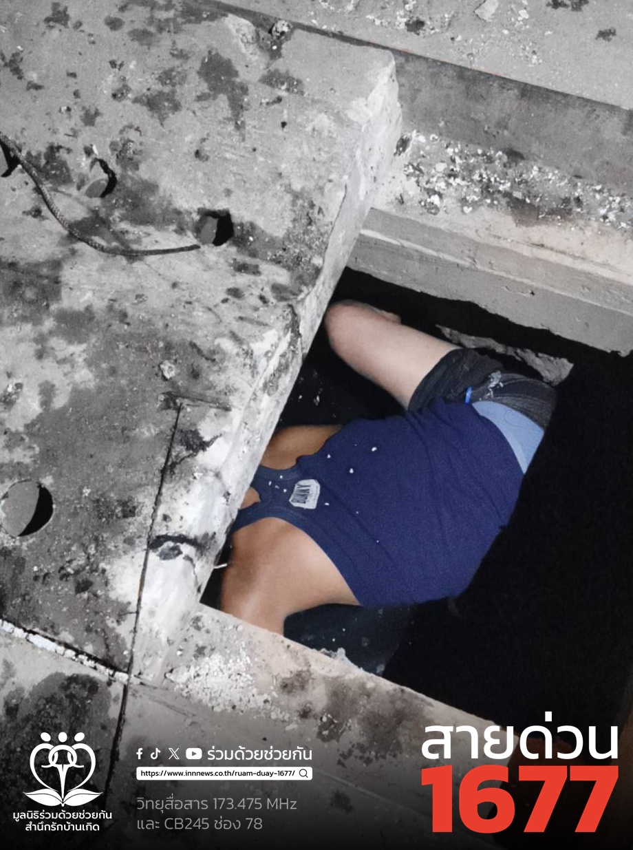 อาสาร่วมด้วยฯ ตรวจสอบลักษณะเป็นฝาท่อปูนสี่เหลี่ยม เอาไฟฉายส่องมองเห็นกุญแจ