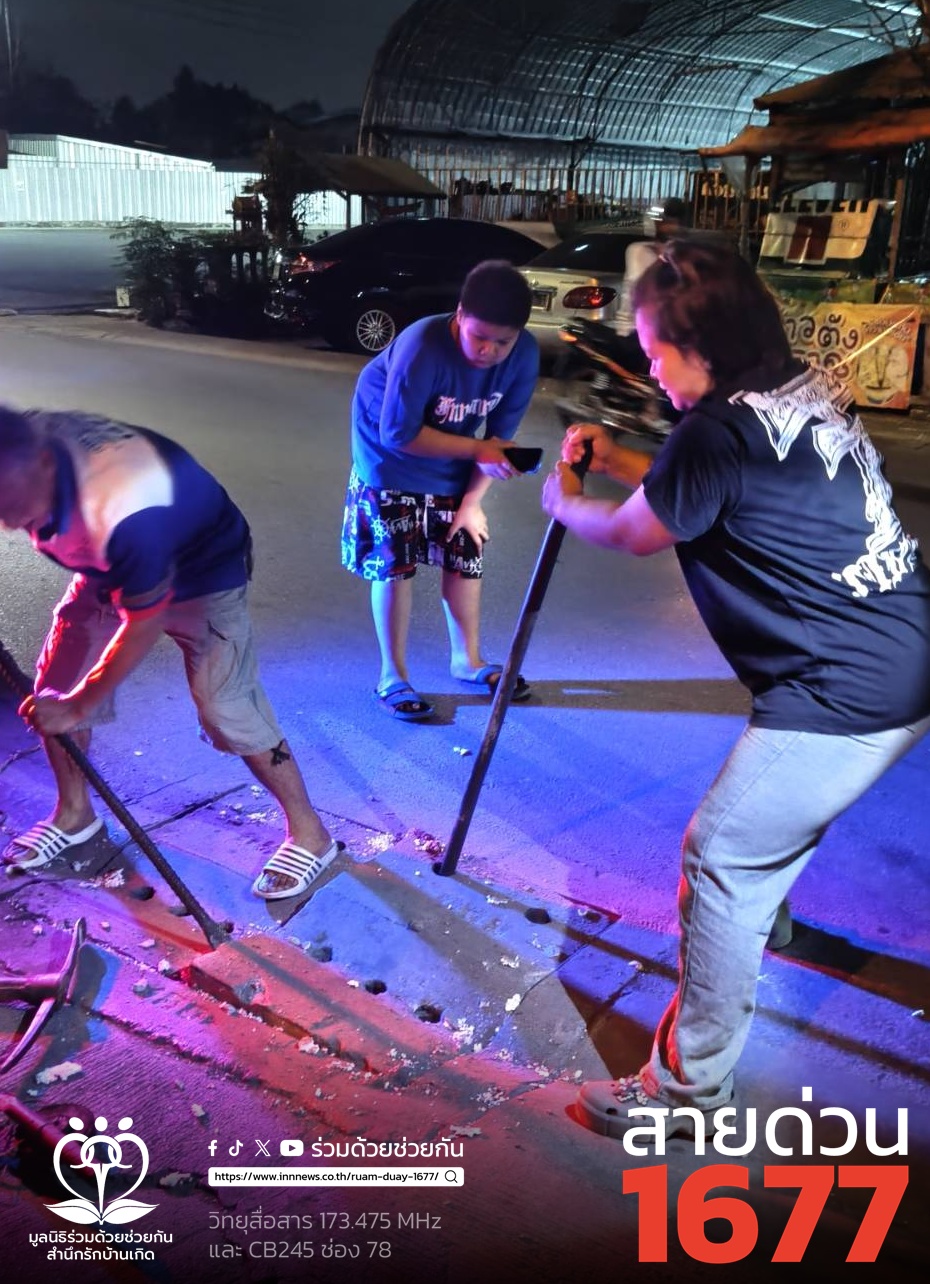 จึงช่วยกันเปิดงัดฝาท่อ ลงไปงมจนพบกุญแจ และใส่ฝาท่อกลับไว้ตามเดิมเรียบร้อยแล้ว