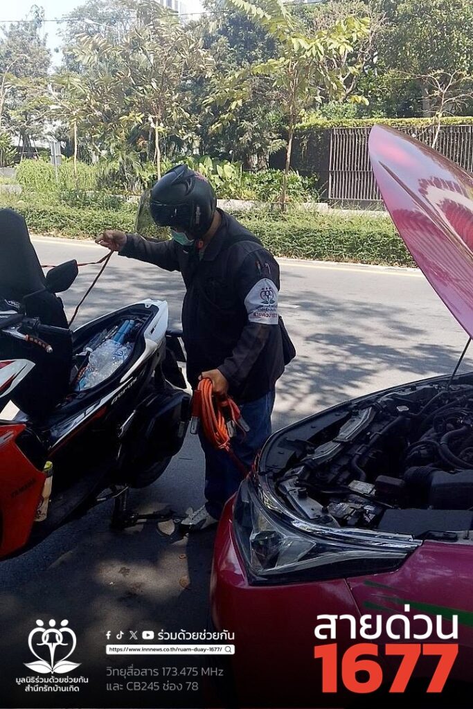 รับแจ้งจากประชาชนขอความช่วยเหลือรถแท็กซี่แบตเตอรี่หมด ซึ่งเป็นรถแท็กซี่โตโยต้า สีชมพู บริเวณตรงข้ามสวนลุมพินี ถนนสารสิน แขวงลุมพินี เขตปทุมวัน กทม. อาสาร่วมด้วย 365 ดำเนินการใช้อุปกรณ์พ่วงแบตเตอรี่ได้สำเร็จ รถสตาร์ทติดขับต่อไปได้