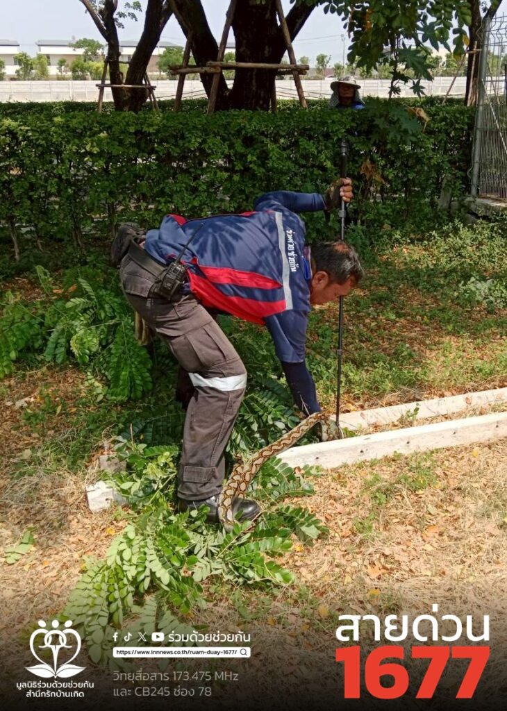 รับแจ้งจากประชาชน ขอความช่วยเหลือจับงูเหลือม บนต้นไม้หน้าหมู่บ้าน ซอยรามอินทรา 83 ถนนรามอินทรา เขตคันนายาว กรุงเทพฯ ศูนย์สื่อสารร่วมด้วยฯ ประสาน อาสาร่วมด้วยคุ้มภัย 006 เข้าช่วยเหลือ จับงูเอาไว้ได้เรียบร้อย พร้อมนำปล่อยคืนสู่ธรรมชาติต่อไป