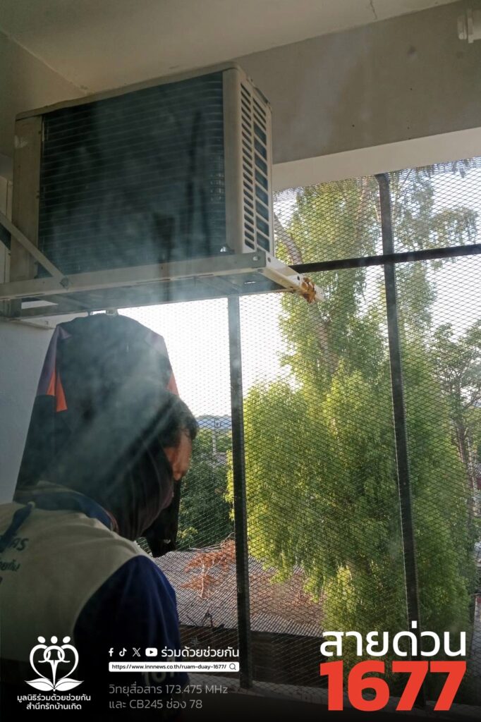 คุณอริศรา ขอความช่วยเหลือทำลายรังผึ้งที่ระเบียงห้อง ซอยราษฎร์พัฒนา 5 ถนนราษฎร์พัฒนา แขวงสะพานสูง เขตสะพานสูง กรุงเทพฯ พบผึ้งทำรังอยู่ใต้คอมเพรสเซอร์ ศูนย์สื่อสารร่วมด้วยช่วยกัน ประสาน อาสาร่วมด้วยคุ้มภัย 006 ดำเนินการใช้อุปกรณ์ทำลายรังผึ้งได้สำเร็จ