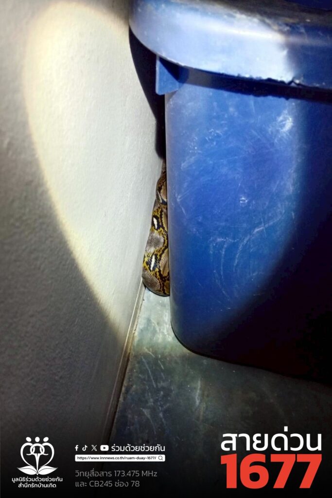 รับแจ้งงูเหลือมเข้าบ้าน บริเวณถนนพระยาสุเรนทร์ แขวงบางชัน เขตคลองสามวา กรุงเทพฯ