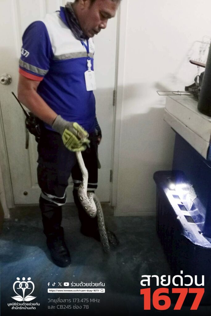 คุณสำลี ขอความช่วยเหลืองูเหลือมเข้าบ้าน บริเวณถนนพระยาสุเรนทร์ แขวงบางชัน เขตคลองสามวา กรุงเทพฯ พบงูเหลือมอยู่หลังกล่องเก็บของ จำนวน 1 ตัว ศูนย์สื่อสารร่วมด้วยช่วยกัน ประสาน อาสาร่วมด้วยคุ้มภัย 006 ดำเนินการจับได้สำเร็จ พร้อมนำปล่อยธรรมชาติต่อไป