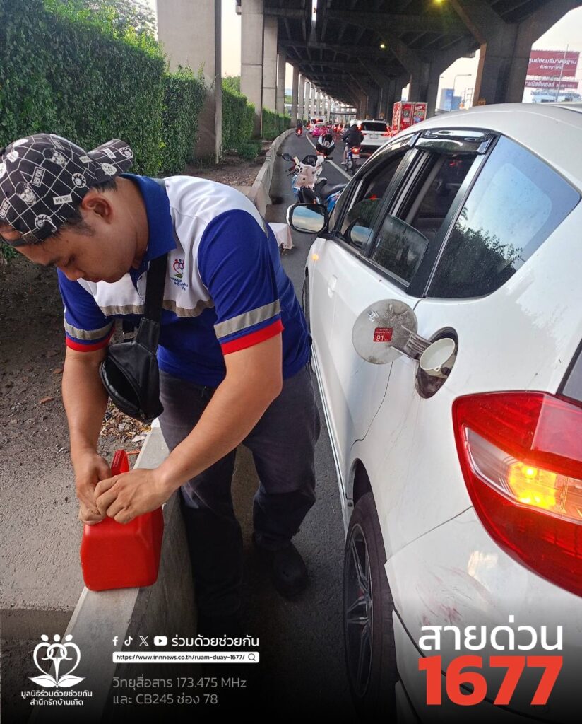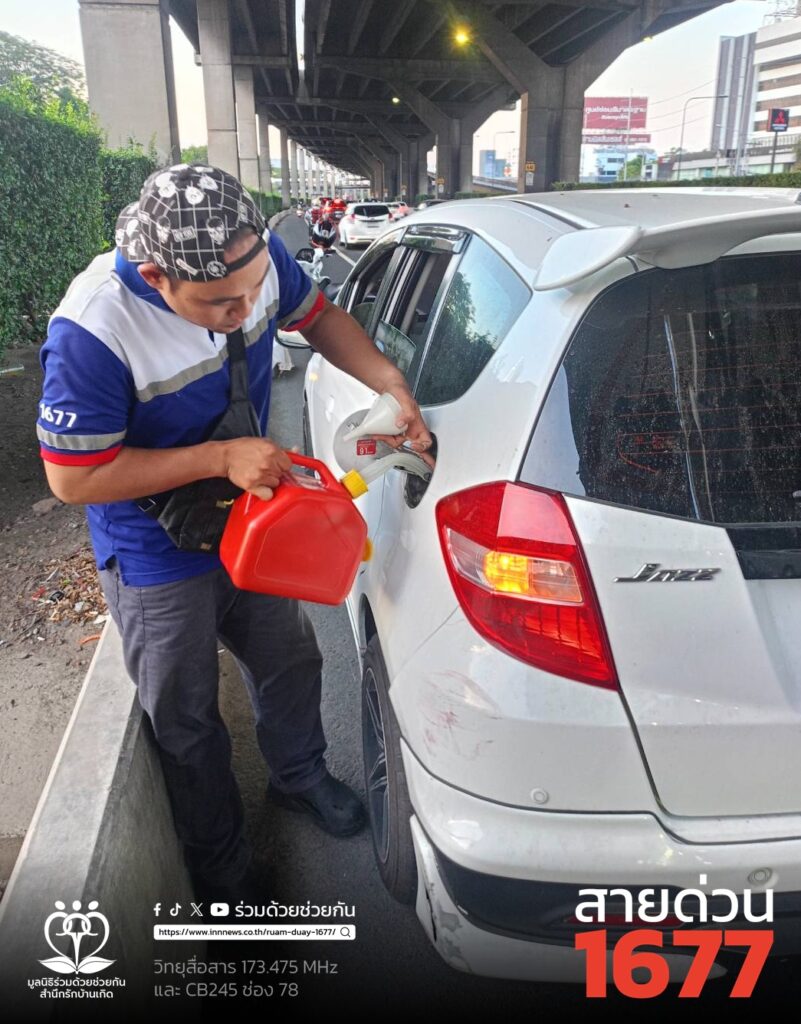 รับแจ้งจากประชาชนขอความช่วยเหลือรถเก๋งน้ำมันหมด ฮอนด้าแจส สีขาว จอดอยู่ใกล้เคียงวัดเสมียนนารี ถนนวิภาวดีรังสิต ขาออก แขวงลาดยาว เขตจตุจักร กรุงเทพฯ ศูนย์สื่อสารร่วมด้วยฯ ประสาน อาสาร่วมด้วย 193 เข้าตรวจสอบช่วยเหลือซื้อน้ำมันมาเติมให้เรียบร้อบ พร้อมขับต่อไปได้