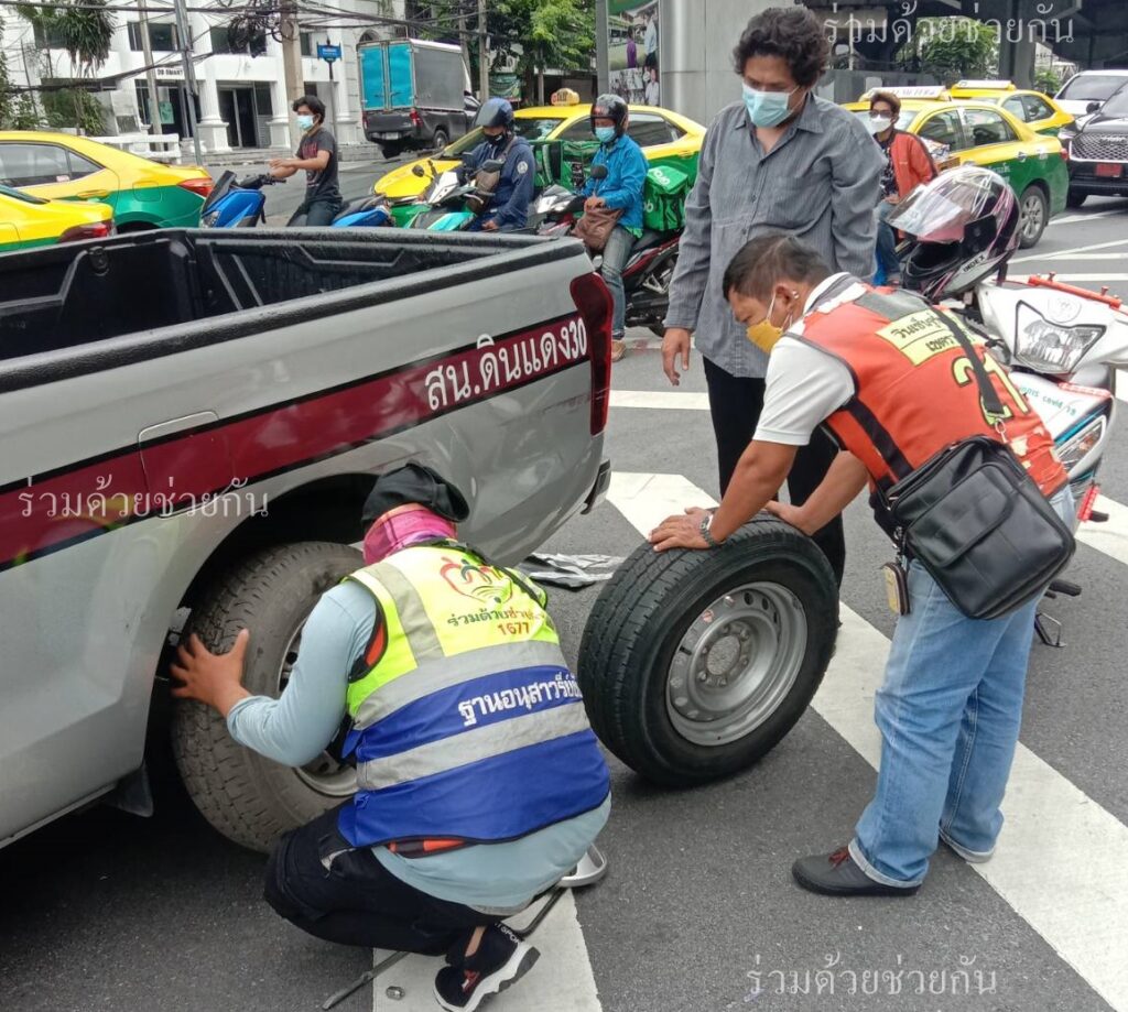 จนท.ตำรวจสน.ดินแดง ขอความช่วยเหลือรถจอดเสีย ล้อยางแตก อาสาร่วมด้วยรีบเข้าช่วยเหลือ