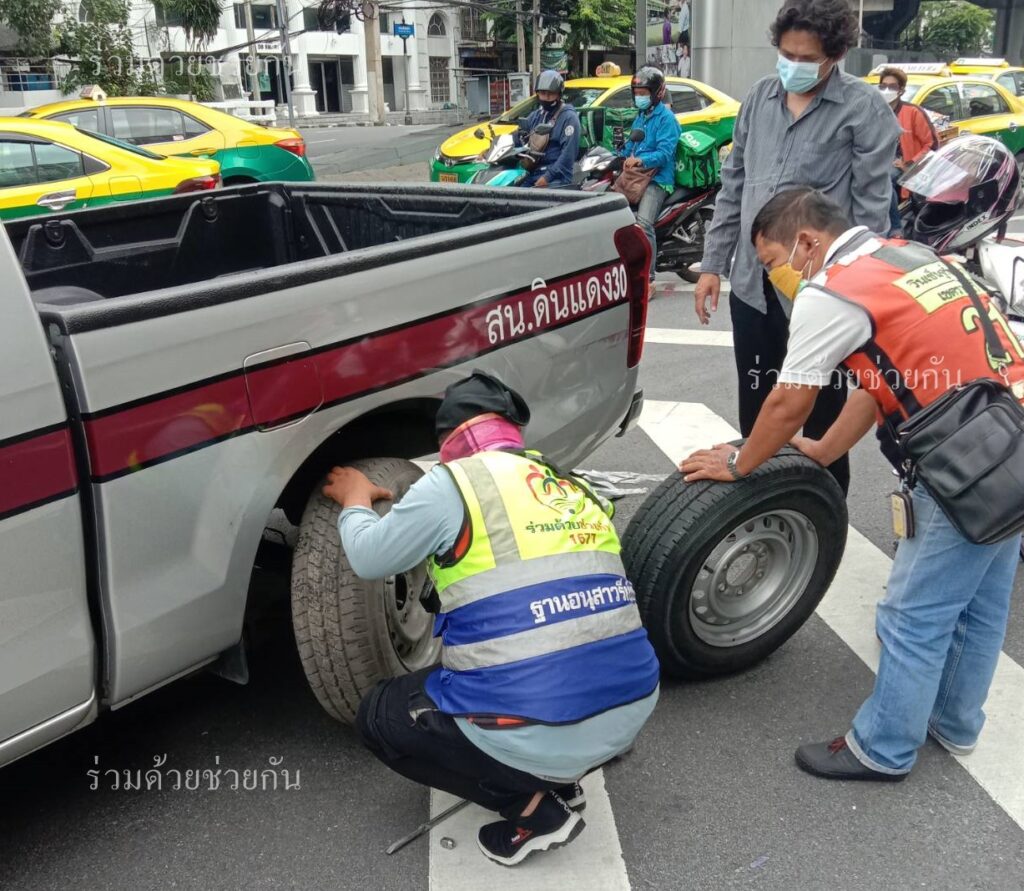อาสาร่วมด้วยสาวรีย์ 03,20,25,47 รับแจ้งจากเจ้าหน้าที่ตำรวจสน.ดินแดง ขอความช่วยเหลือรถจอดเสีย ล้อยางแตก เป็นรถกระบะอีซูซุ ดีแม็กซ์ สีบรอนซ์ ทะเบียน จอดอยู่ใกล้เคียงแยกสามเหลี่ยมดินแดง อาสาร่วมด้วยได้นำอุปกรณ์เข้าช่วยเหลือ ทำการปรับเปลี่ยนล้อยางอะไหล่ให้เป็นที่เรียบร้อย รถขับเคลื่อนต่อไปได้