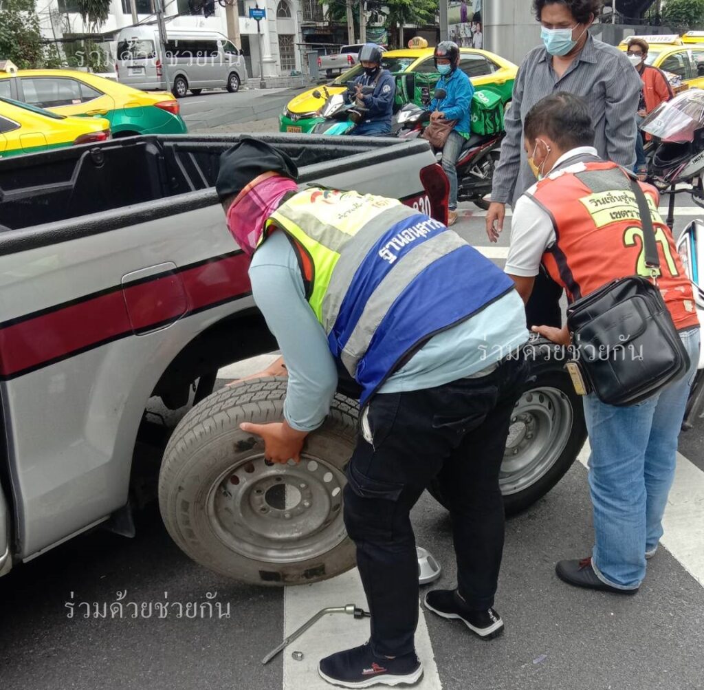 อาสาช่วยได้! จนท.ตำรวจร้องขอความช่วยเหลือรถล้อยางแตก