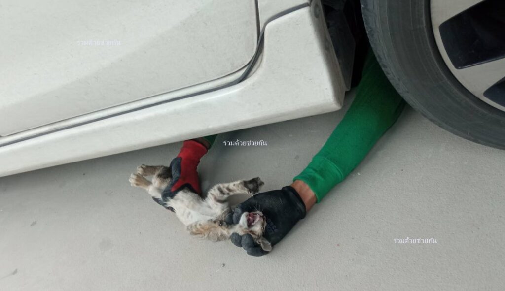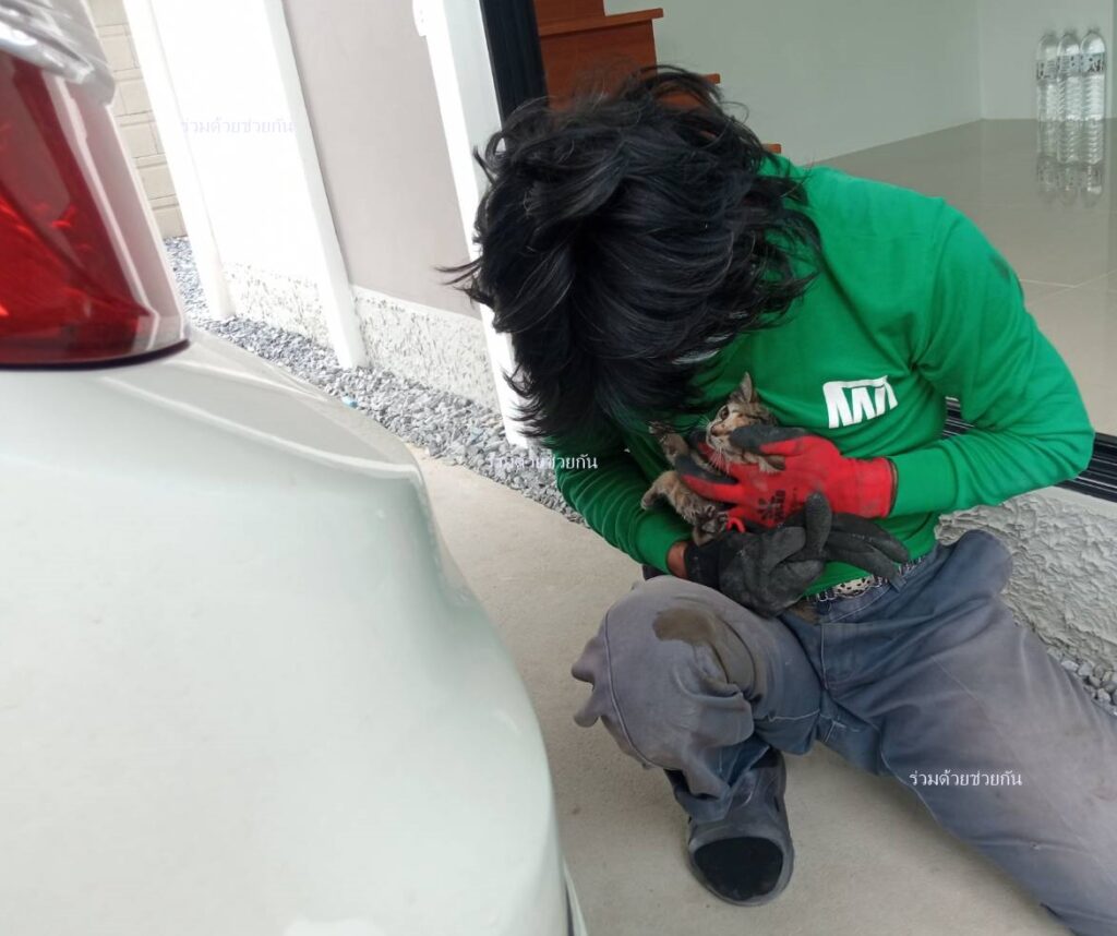 อาสาร่วมด้วยฯ ช่วยเหลือลูกแมวติดใต้ท้องรถยนต์ หมู่บ้านฉัตรหลวง 17 จ.ปทุมธานี