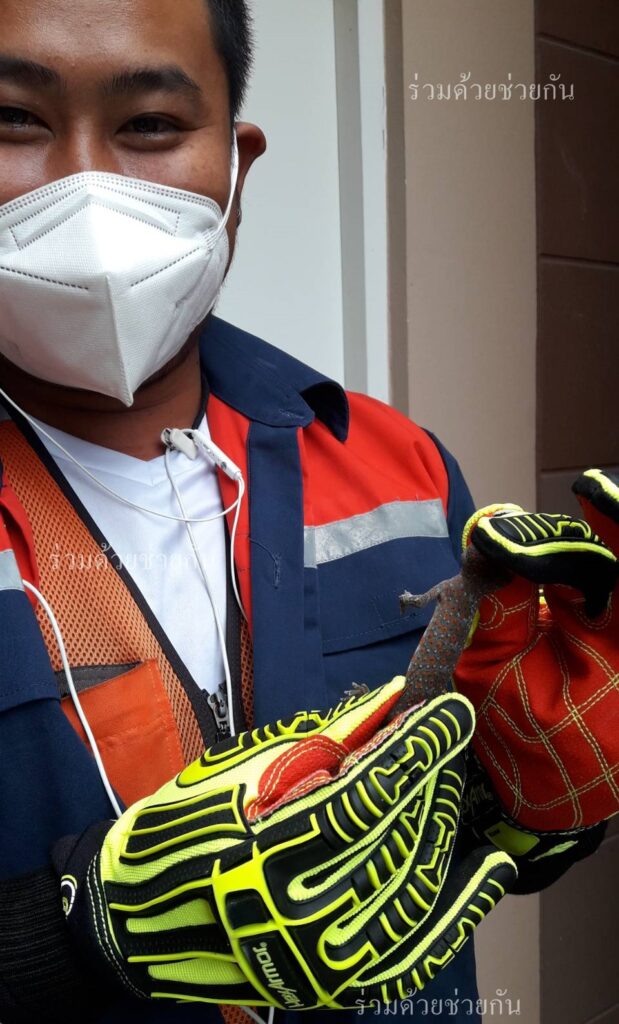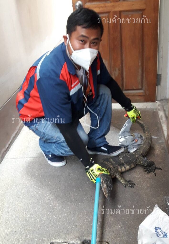 คุณธนเดช แจ้งผ่านทางสายด่วน 1677 ขอความช่วยเหลือจับสัตว์เลื้อยคลาน ภายในบ้านพัก ซอยลาดพร้าว 8 แยก 9-1-2 เขตจตุจักร กรุงเทพฯ ร่วมด้วยช่วยกัน ประสานอาสาร่วมด้วย CB ห้วยขวาง 114 และ 501 เข้าตรวจสอบพบตัวเงินตัวทองจำนวน 1 ตัว หลบซ่อนตัวอยู่ในห้องเก็บของ และพบตุ๊กแกจำนวน 1 ตัว อาสาได้นำอุปกรณ์ เข้าทำการคล้องจับตัวเงินตัวทองและตุ๊กแกเอาไว้ได้เป็นผลสำเร็จ พร้อมนำสัตว์ทั้ง 2 ชนิด ไปปล่อยคืนสู่พื้นที่ธรรมชาติต่อไป
