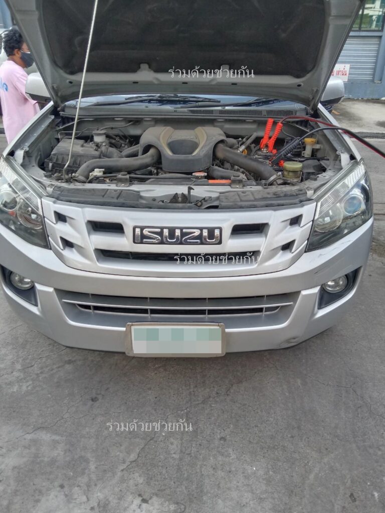 อาสาร่วมด้วยฐานคุ้มภัย พร้อมอุปกรณ์ร่วมให้การช่วยเหลือรถยนต์จอดเสีย ภายในซอยรามอินทรา 99 ถนนรามอินทรา แขวงคันนายาว เขตคันนายาว กรุงเทพฯ ตรวจสอบพบเป็นรถกระบะ อีซูซุ ดีแม็ค สีบรอน จอดเสียอาการกระแสไฟในแบตเตอรี่หมด อาสาให้การช่วยเหลือนำอุปกรณ์สายพ่วงแบตมาพ่วงกระแสไฟ รถสตาร์ทเครื่องยนต์ติดสามารถขับเคลื่อนต่อไปได้