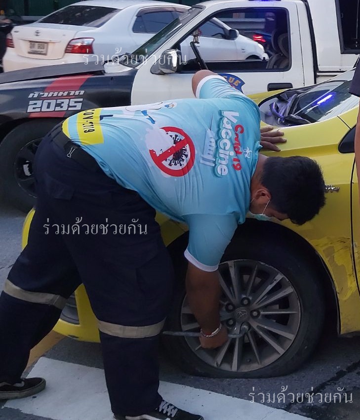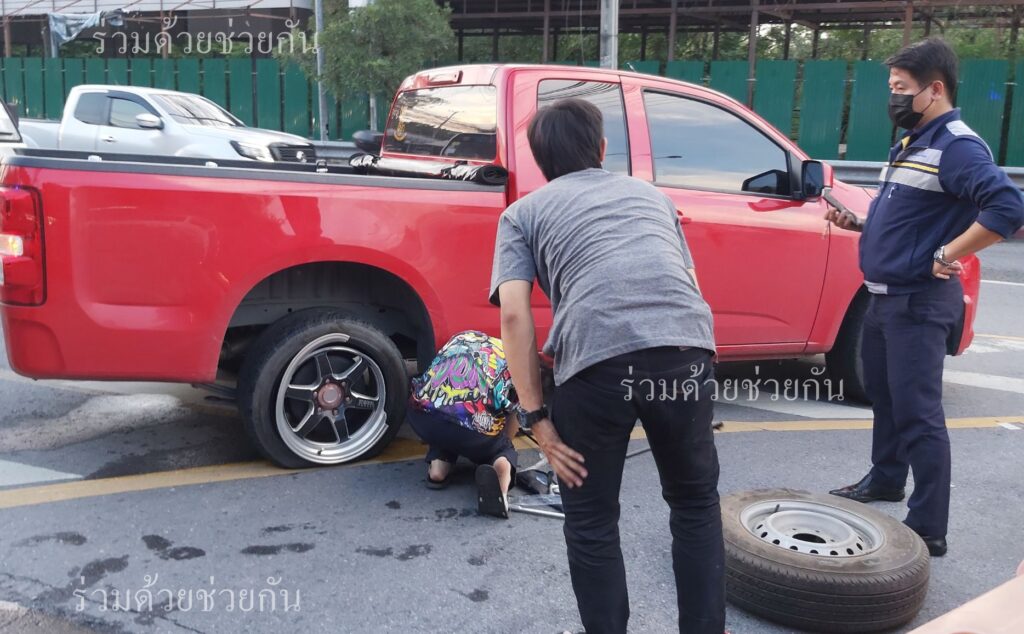 รถล้อยางแตกจากเหตุชนกัน ถ.รามคำแหง ซอย 24 อาสาร่วมด้วยรีบเข้าช่วยเหลือ