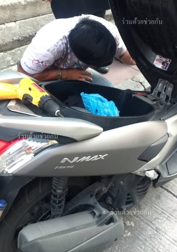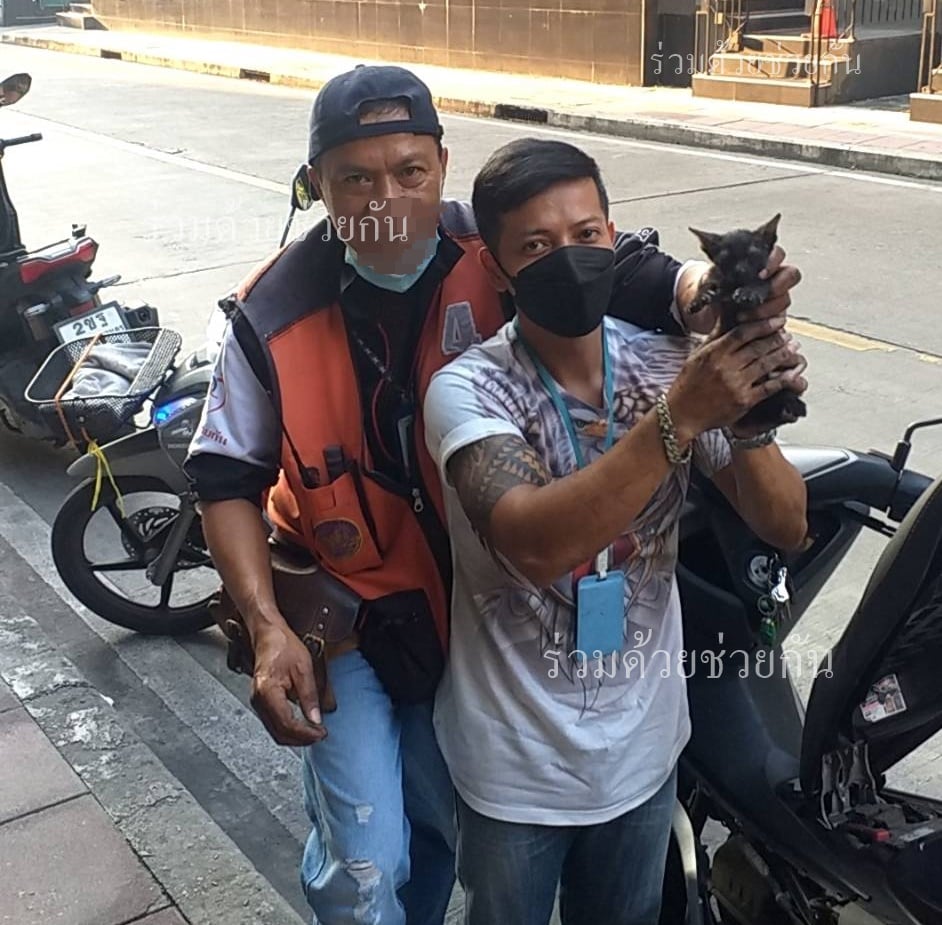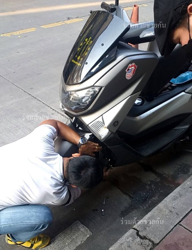 อาสาร่วมด้วยฯ พร้อมอุปกรณ์ให้การช่วยเหลือลูกแมวติดในห้องเครื่องรถจักรยานยนต์ ซอยสุขุมวิท 11 เขตคลองเตย กรุงเทพฯ