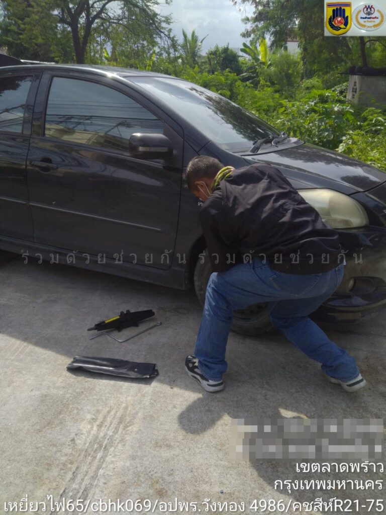 อาสาร่วมด้วยฯ ช่วยเหลือประชาชนรถเก๋งจอดเสียยางแตก โชคชัย 4 ซอย 84