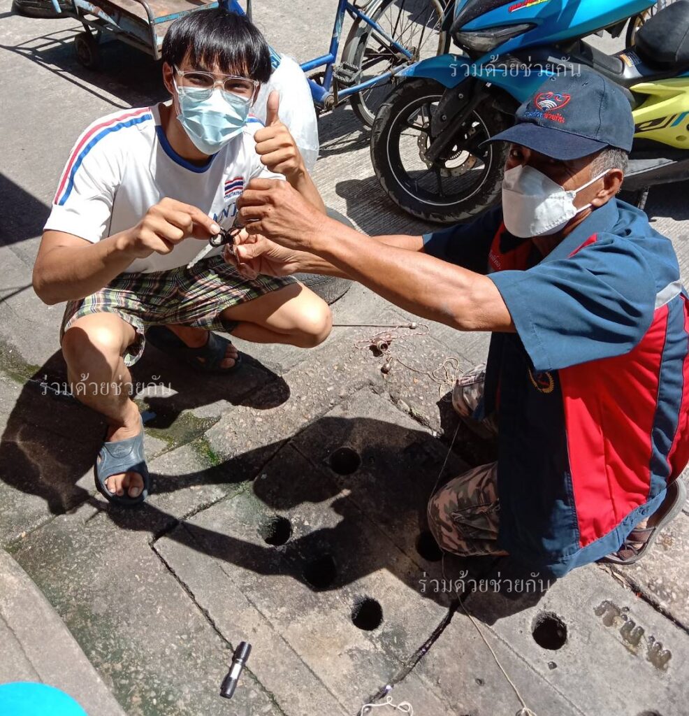 คุณเนม แจ้งผ่านสายด่วน 1677 ขอความช่วยเหลือทำกุญแจรถจักรยานยนต์ตกท่อระบายน้ำ ปากซอยประชาอุทิศ 91/1 เขตทุ่งครุ กรุงเทพฯ ศูนย์วิทยุร่วมด้วยช่วยกัน ประสานอาสาร่วมด้วยกาญจนกุญชร 001 , โพธิ์ทอง 04 นำอุปกรณ์เข้าช่วยเหลือ โดยทำการใช้แม่เหล็กหย่อนลงท่อ และดึงกุญแจรถขึ้นมาจากท่อได้เป็นผลสำเร็จ พร้อมนำส่งคืนให้กับเจ้าของเป็นที่เรียบร้อย