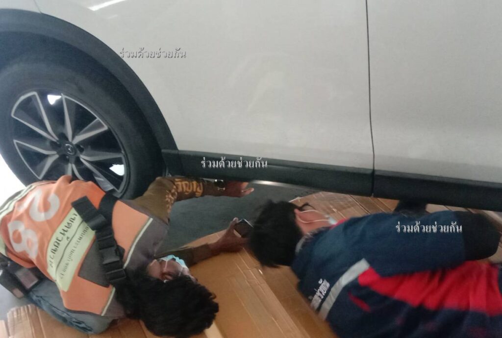อาสาร่วมด้วยฯ พร้อมอุปกรณ์เข้าช่วยเหลือลูกแมวจำนวน 4 ตัวติดใต้ท้องรถยนต์ ภายในซอยศูนย์วิจัย 6 ถนนพระราม 9 แขวงบางกะปิ เขตห้วยขวาง กรุงเทพฯ