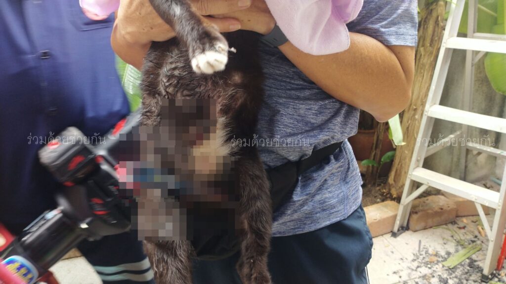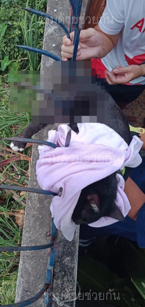 อาสาช่วยแมวถูกรั้วเหล็กเสียบขา ซอยพุทธบูชา 44