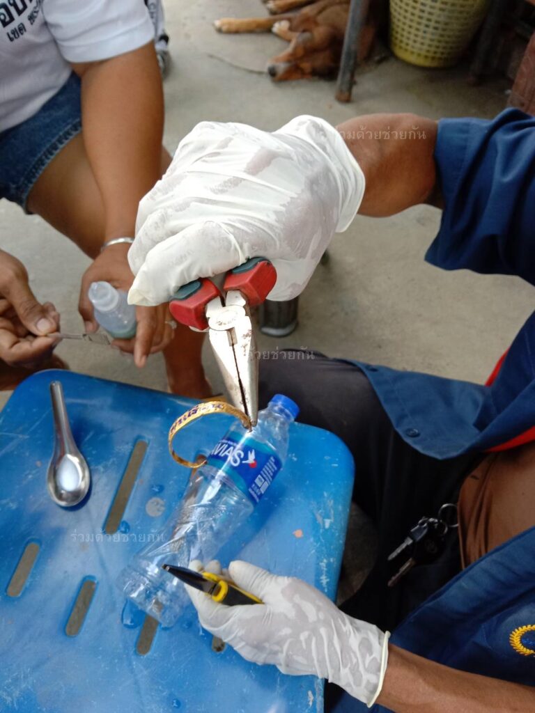 อาสาร่วมด้วยฐานโพธิ์ทอง และอาสาร่วมด้วยฐานกาญจนกุญชร ร่วมให้การช่วยเหลือประชาชนแหวนติดนิ้วมือ ภายในซอยสุขสวัสดิ์ 26 ถนนสุขสวัสดิ์ แขวงบางปะกอก เขตราษฎร์บูรณะ กรุงเทพฯ ตรวจสอบพบเป็นหญิง 1 ราย แหวนทองติดนิ้วกลางมือข้างขวา ไม่สามารถถอดออกมาได้ อาสานำคีมตัดแหวนขนาดเล็ก ทำการตัดแหวนออกจากนิ้วมือได้สำเร็จ นิ้วบวมแดงเล็กน้อย ไม่ไปโรงพยาบาล