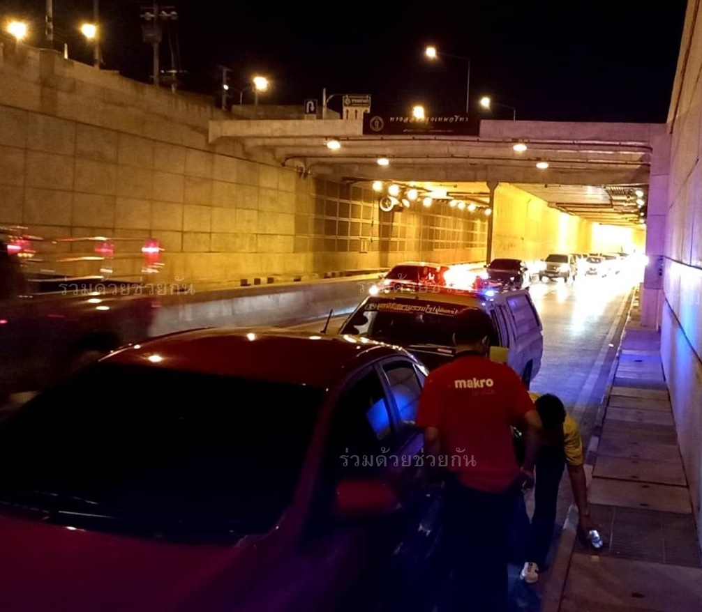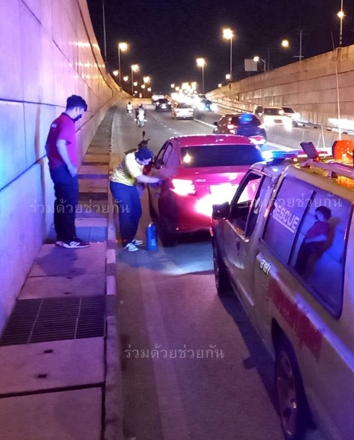 อาสาฯ ช่วยเหลือรถยนต์น้ำมันหมด ภายในอุโมงค์ทางลอดกรุงเทพกรีฑา ถนนหัวหมาก– กรุงเทพกรีฑา