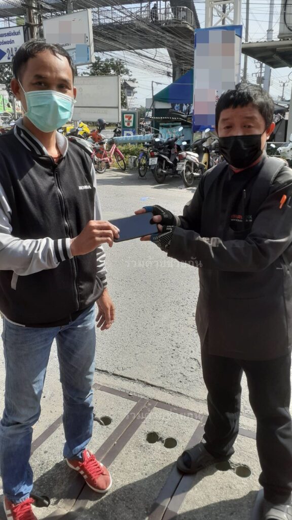 อาสาร่วมด้วยฯ เก็บโทรศัพท์มือถือบนพื้นถนนได้ ถนนเทพารักษ์ ต.บางพลีใหญ่ อ.บางพลี จ.สมุทรปราการ