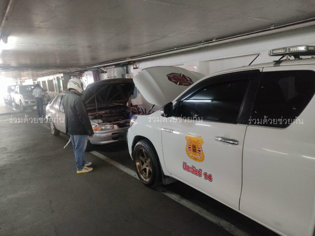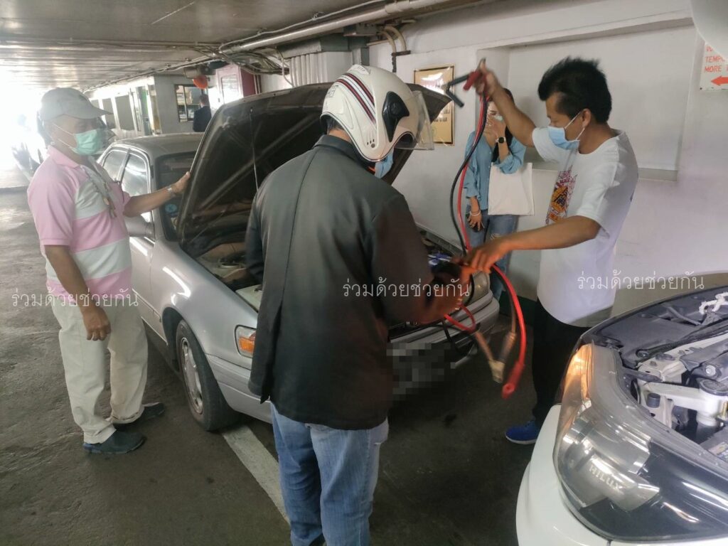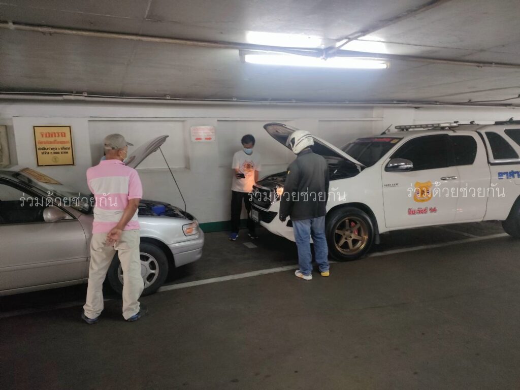อาสาร่วมด้วยฯ ช่วยพ่วงแบตเตอรี่รถเก๋ง ภายในอาคารลานจอดรถ ถ.พระราม 4