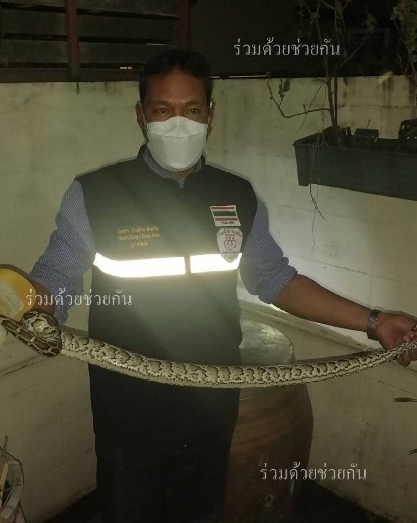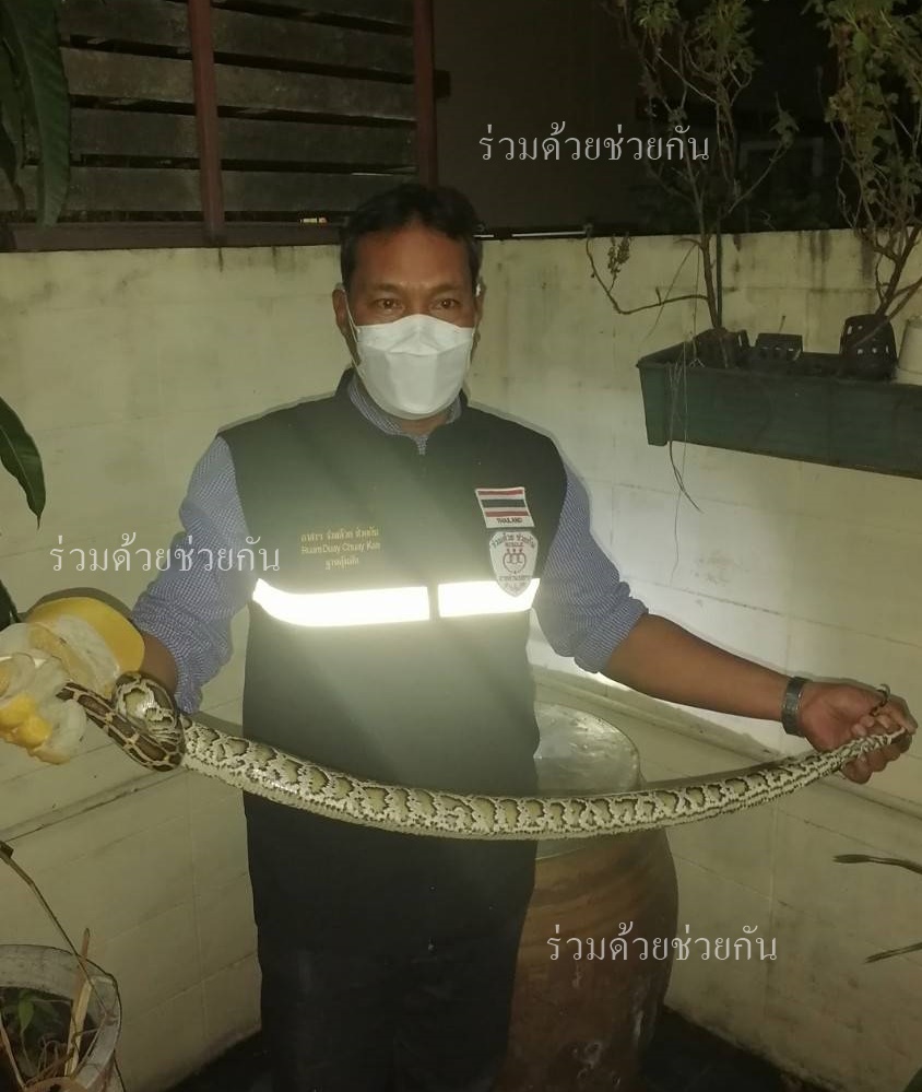 ประชาชนขอความช่วยเหลือให้ช่วยจับงูหลาม ถ.พระยาสุเรนทร์ ซอย 40 อาสาร่วมด้วยรีบเข้าช่วยเหลือเป็นที่เรียบร้อย