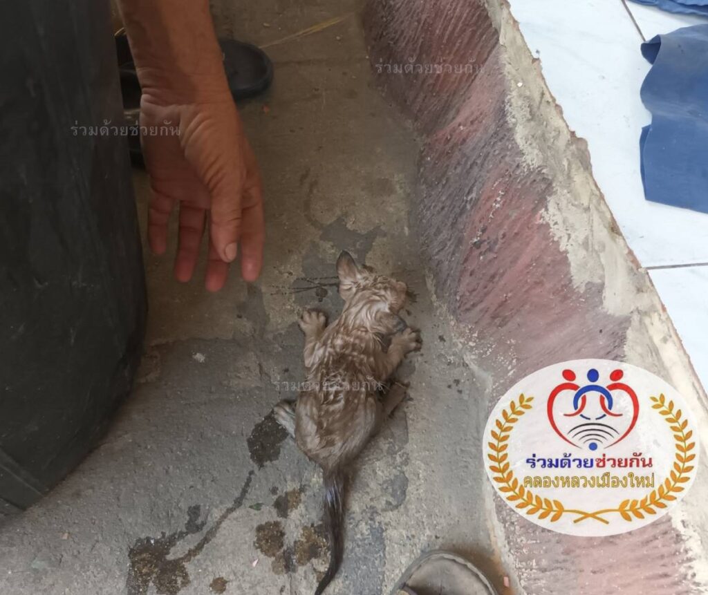อาสาร่วมด้วยฯ เร่งให้การช่วยเหลือลูกแมวตกท่อระบายน้ำ ถนนเลียบคลองสอง ต.คูคต อ.ลำลูกกา จ.ปทุมธานี