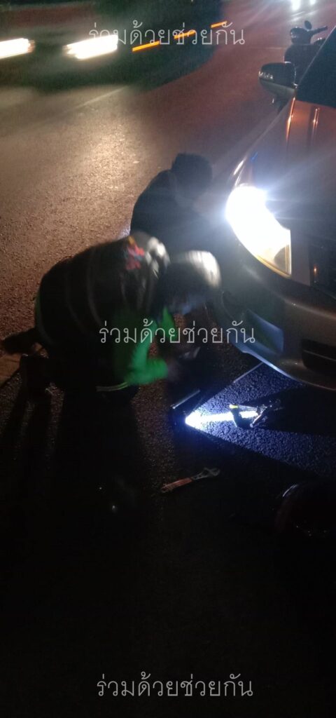 อาสาร่วมด้วยช่วยกัน ช่วยเหลือประชาชนรถเก๋งยางแตก ถนนพระราม 2 ขาออก