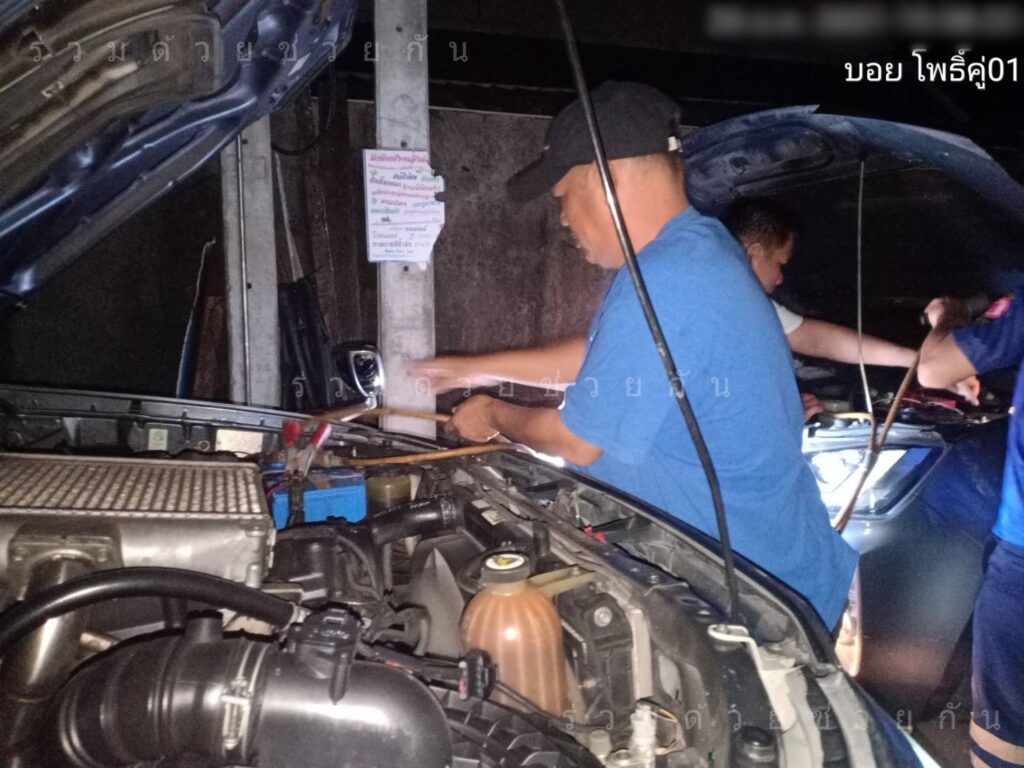 อาสาร่วมด้วยฐานโพธิ์คู่ ให้การช่วยเหลือประชาชนรถกระบะจอดเสียแบตเตอรี่หมดสตาร์ทไม่ติด จอดอยู่ซอยราชวิถี 21 ถนนราชวิถี