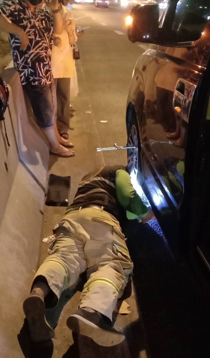 รถยางแตก กลางถนนพระราม 2 อาสาฯ ช่วยเปลี่ยนยาง