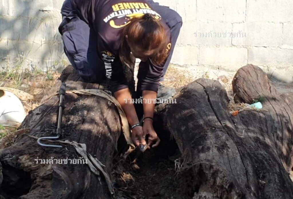 อาสาร่วมด้วยฯ ช่วยจับงูเห่าบริเวณตอไม้ ในวัดมหิงษาราม ต.บางกระบือ อ.สามโคก จ.ปทุมธานี