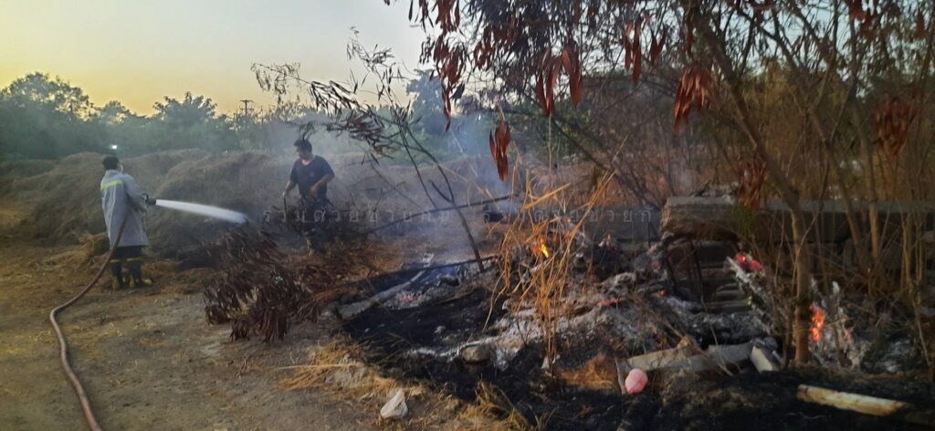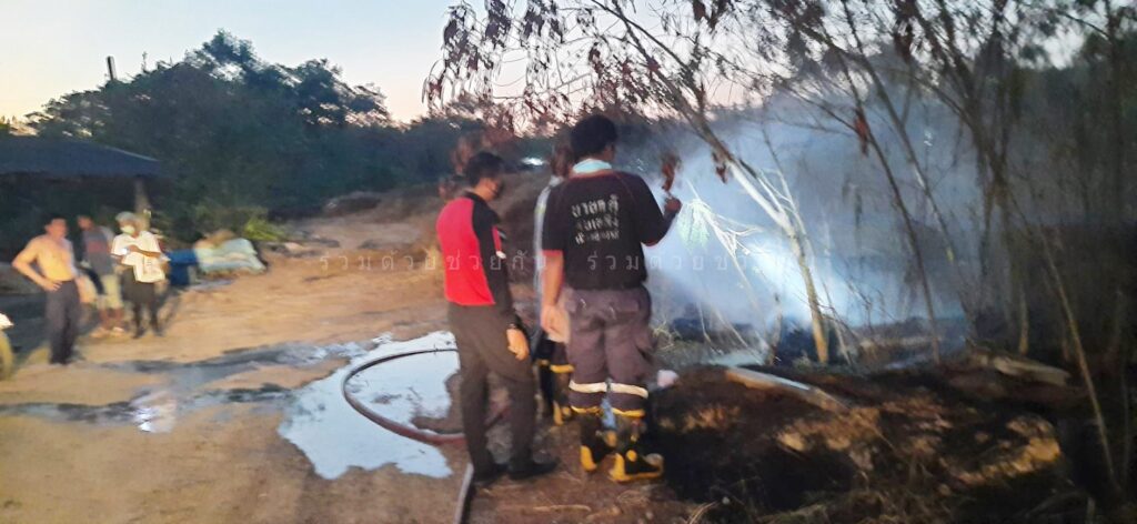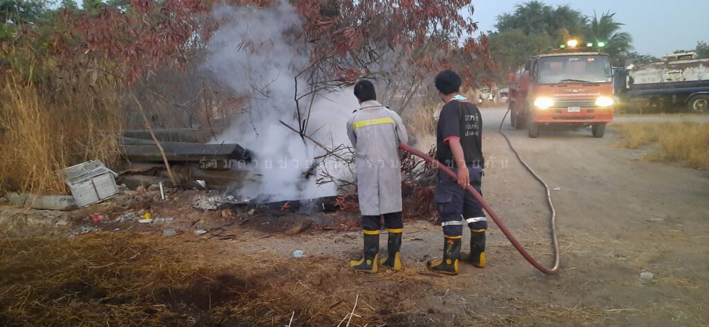 เพลิงไหม้หญ้าและกองขยะใกล้บ้านเรือนประชาชน ชุมชนร่วมจิตต์มุสลิม จ.ปทุมธานี