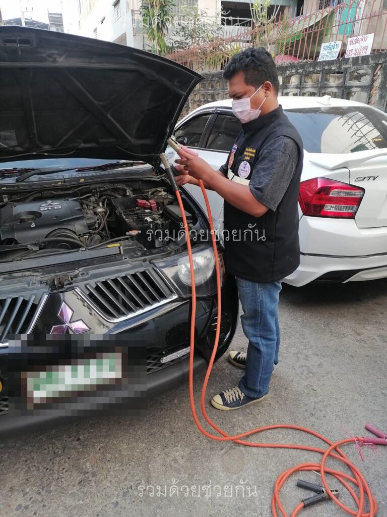 อาสาช่วยเหลือรถกระบะแบตเตอรี่หมด ถ.รามคำแหง
