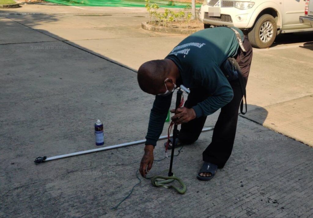 ศูนย์วิทยุร่วมด้วยช่วยกัน รับแจ้งจากอาสาร่วมด้วยฐานคลองหลวงเมืองใหม่ ประชาชนขอความช่วยเหลือจับงูในห้องเครื่องรถยนต์ ภายในโรงกษาปณ์ ถนนพหลโยธิน ต.คลองหนึ่ง อ.คลองหลวง จ.ปทุมธานี ตรวจสอบพบงูเหลือมหลบซ่อนภายในห้องเครื่องรถเก๋ง ฮอนด้า ซีวิค สีน้ำตาล อาสาใช้อุปกรณ์ไม้คล้องสามารถจับงูไว้ได้ พร้อมนำปล่อยคืนสู่ธรรมชาติห่างไกลบ้านเรือนประชาชน