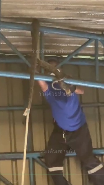 งูเหลือมโผล่ใต้หลังคา ซอยพุทธบูชา 36