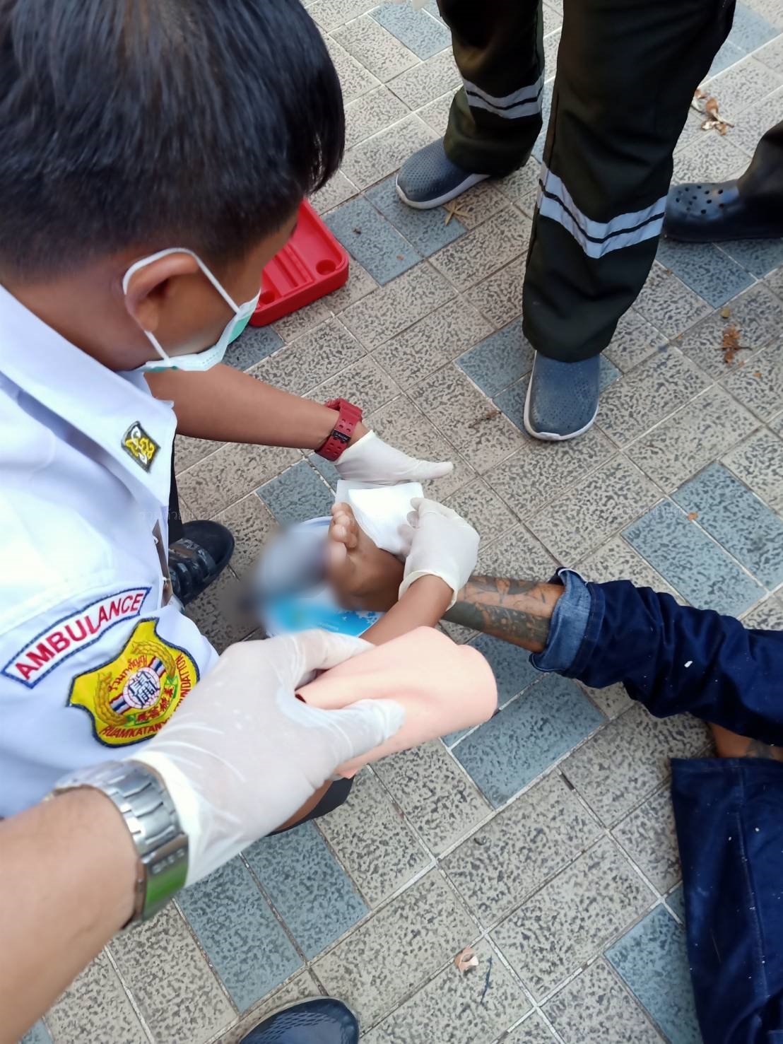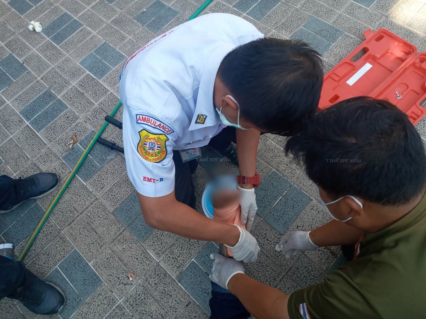 คนงานก้าวพลาดพลัดตกนั่งร้าน ถูกรั้วเหล็กเสียบเท้าทะลุ จนท.ช่วยส่ง รพ.