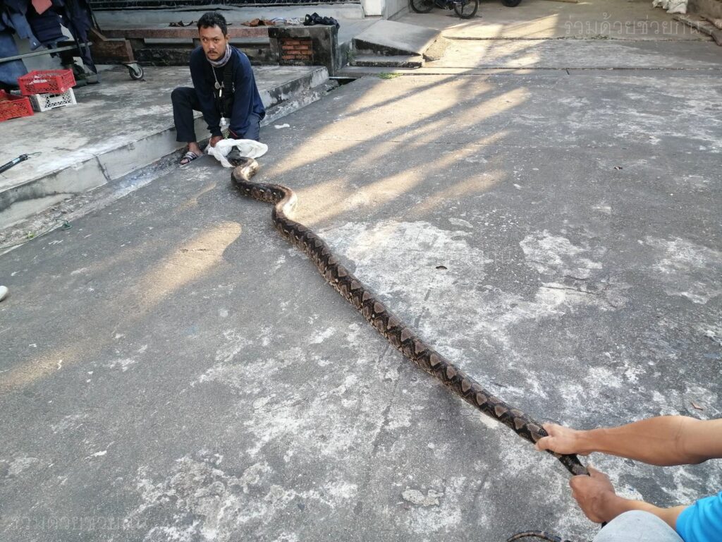 อาสาร่วมด้วยฯ ช่วยจับงูเหลือมขนาดใหญ่หลังบ้าน ซอยอ่อนนุช 25 เขตสวนหลวง กรุงเทพฯ