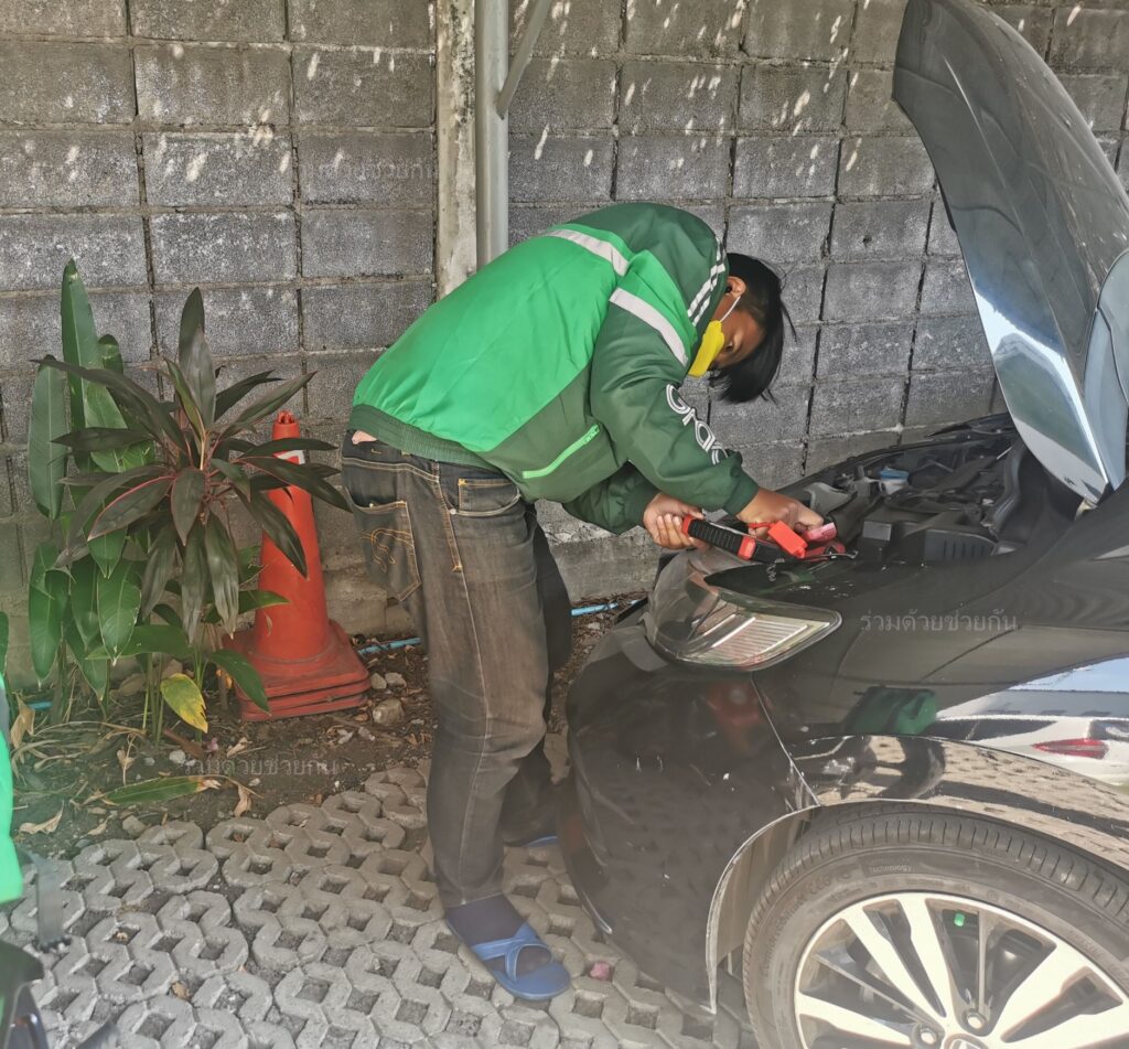 อาสาร่วมด้วยฯ ช่วยรถเก๋งแบตเตอรี่หมด ถ.พระราม 9 ซอย 19