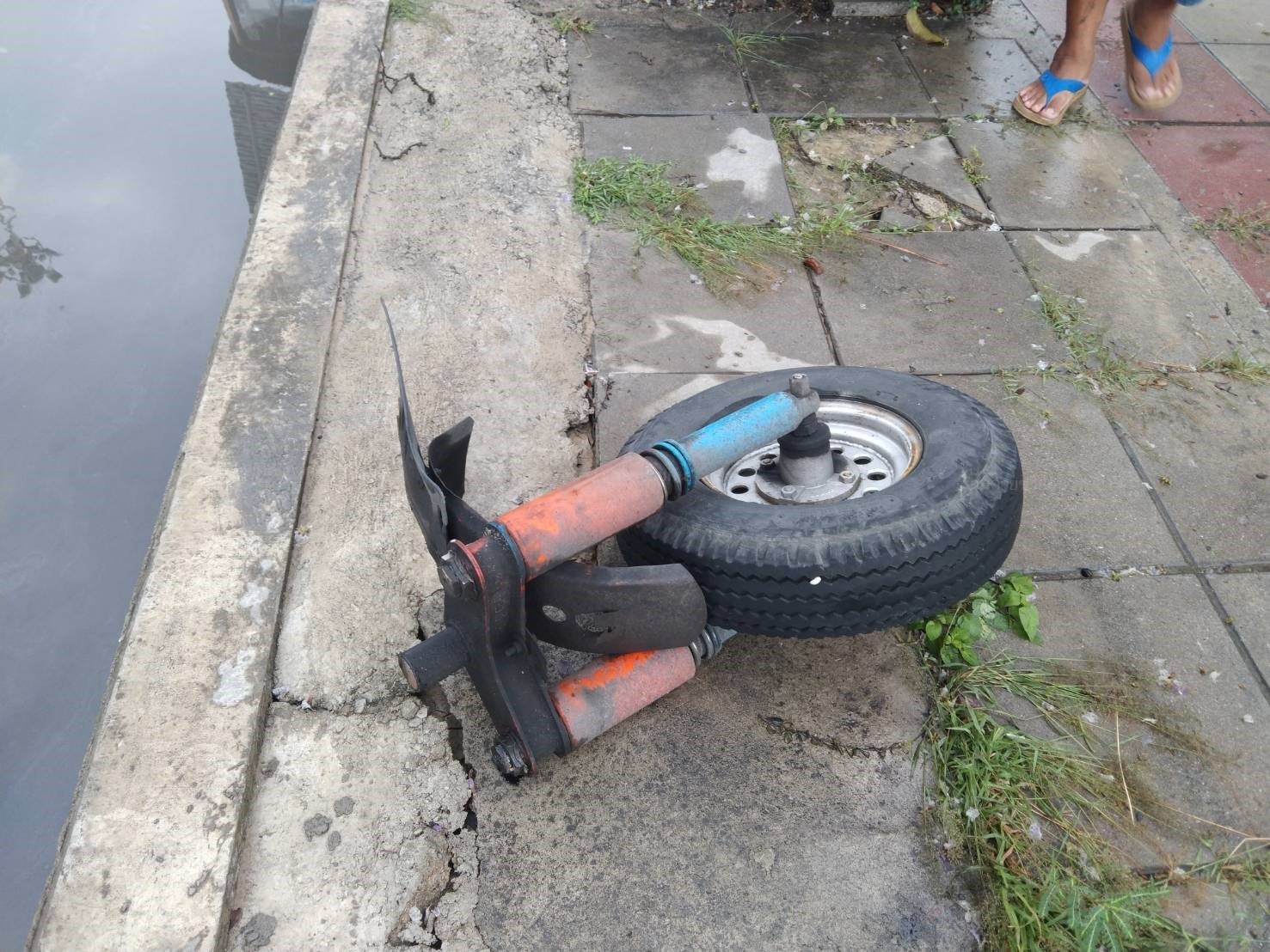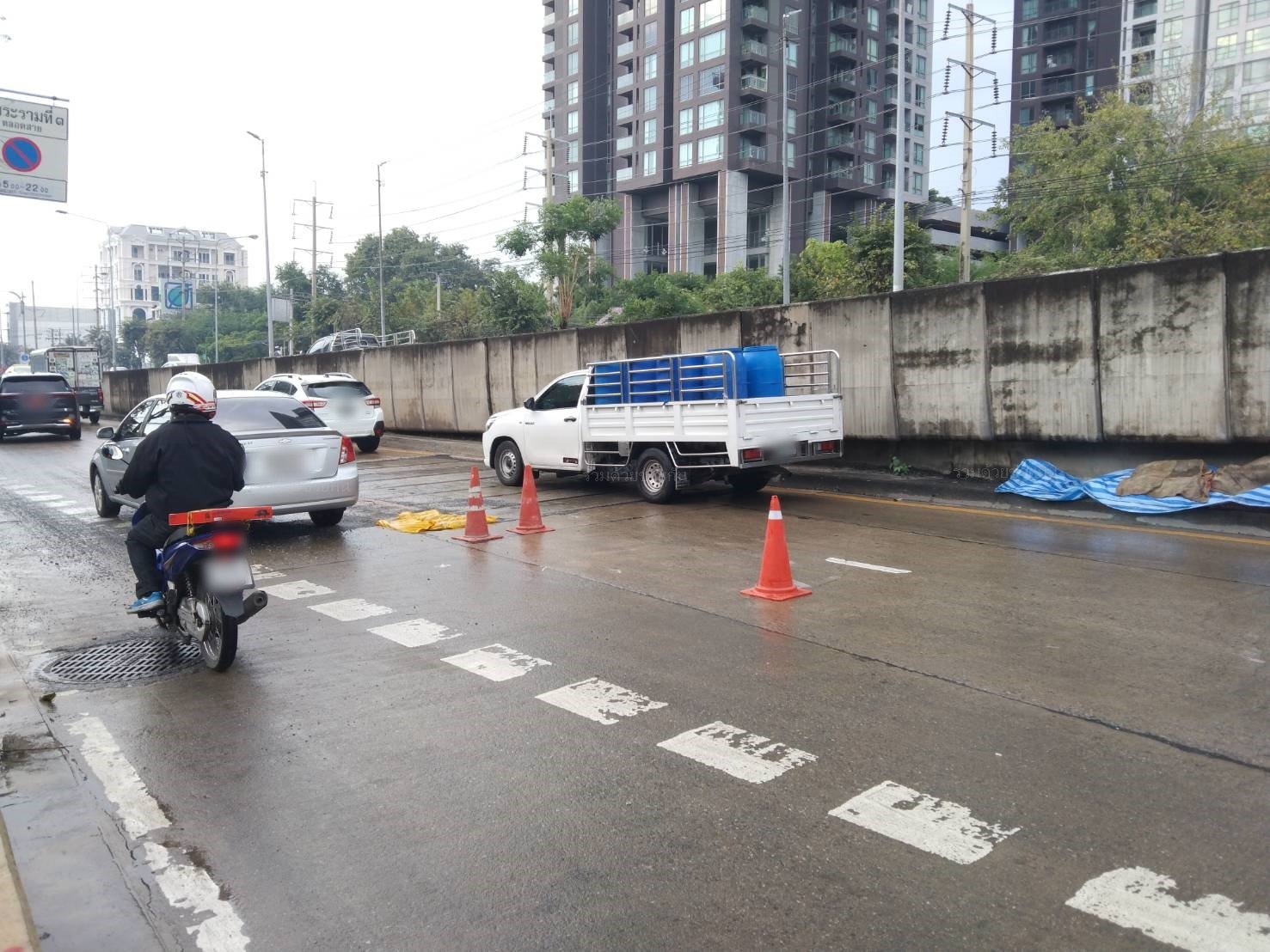 รถสามล้อเครื่องตกหลุม ถนนพระราม 3 แจ้งกทม.เร่งแก้ไขซ่อมแซม