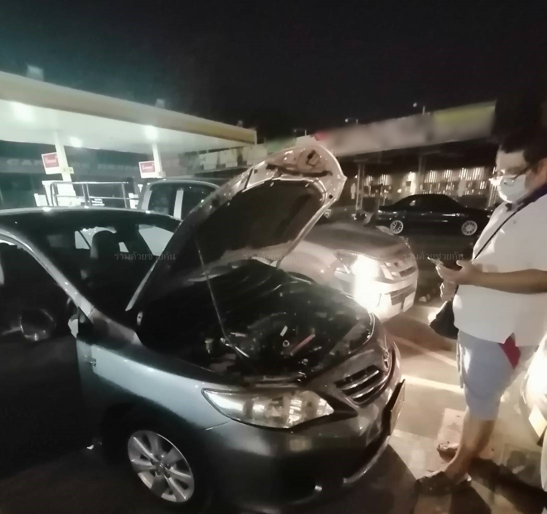 คุณวรพงษ์ ขอความช่วยเหลือ รถสตาร์ทไม่ติด รถเก๋งโตโยต้า อัลติส สีบรอนซ์ จอดอยู่ภายในปั๊มน้ำมันเชลล์ ถนนสุวินทวงศ์ ซอย 16 เขตมีนบุรี กรุงเทพฯ ศูนย์วิทยุร่วมด้วยช่วยกัน ประสาน อาสาร่วมด้วยฐานคุ้มภัย เข้าช่วยเหลือ ตรวจสอบพบสาเหตุเกิดจากแบตเตอรี่หมด อาสาฯ นำอุปกรณ์ช่วยเหลือพ่วงแบตเตอรี่ให้ รถสตาร์ทติด ขับเคลื่อนต่อไปได้